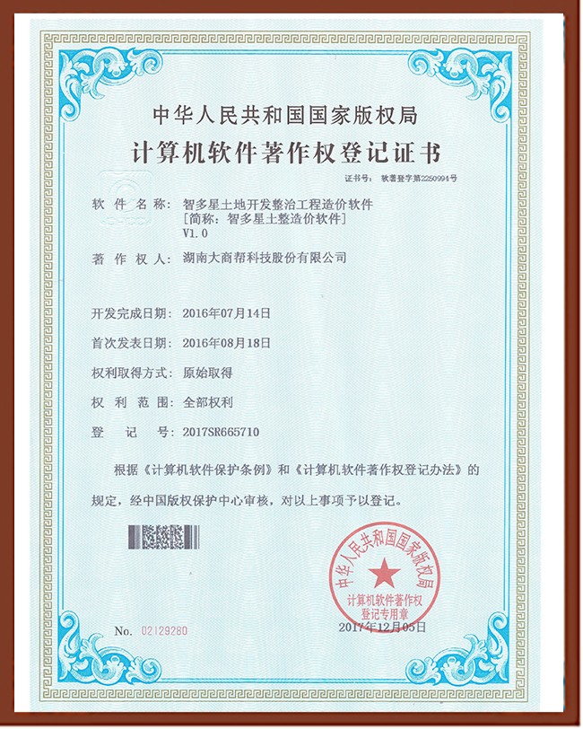 智多星工程造價(jià)軟件著作權(quán)