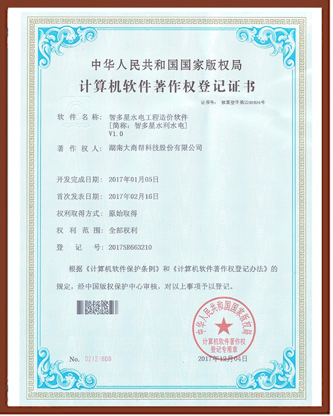 智多星水電工程造價(jià)軟件著作權(quán)