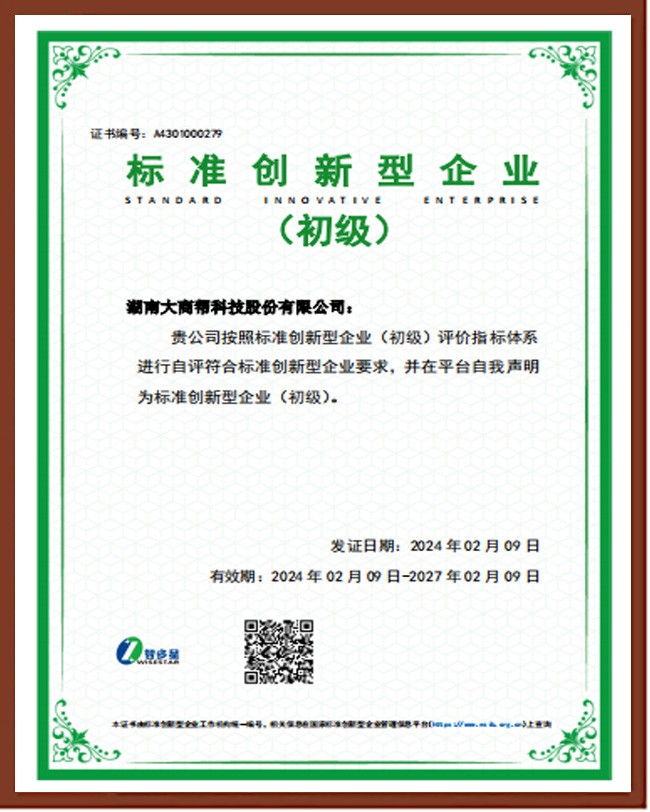 標(biāo)準(zhǔn)創(chuàng)新型企業(yè)認(rèn)證證書