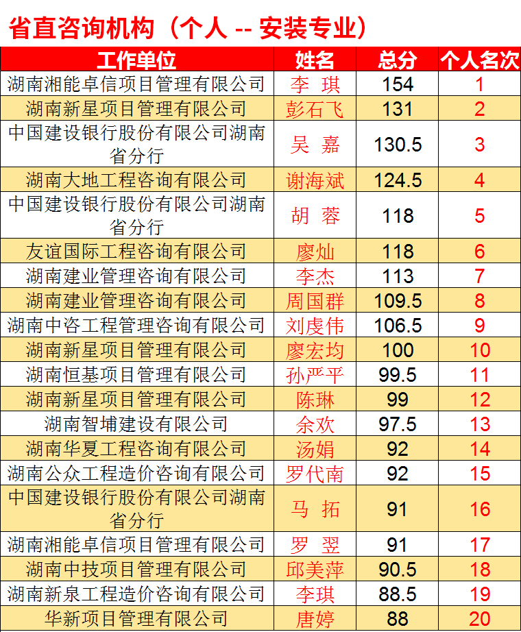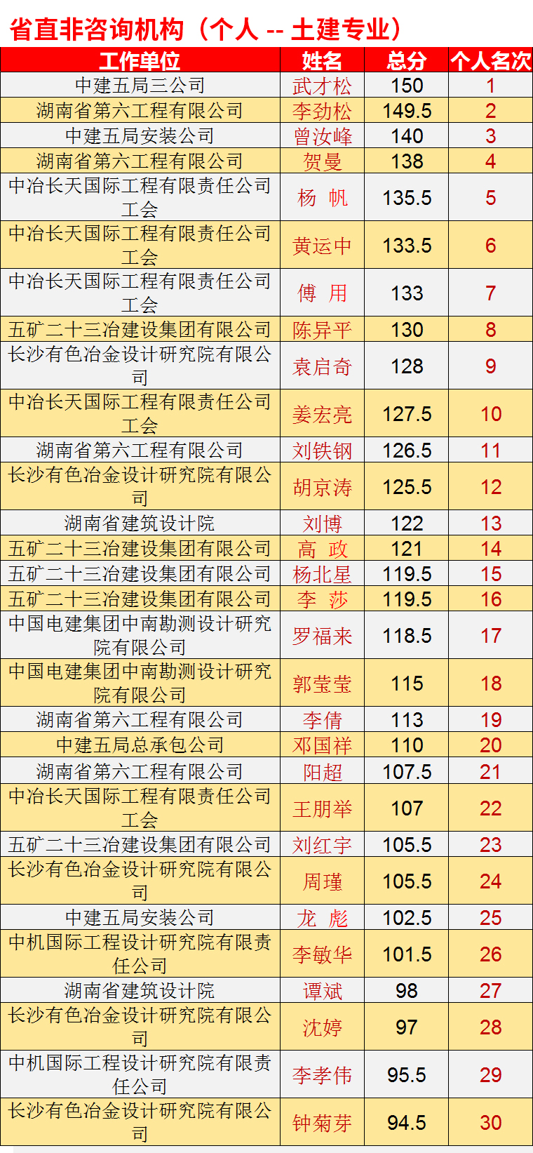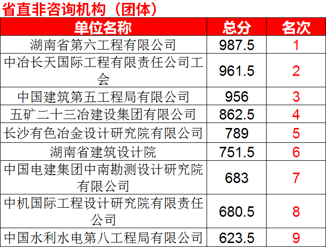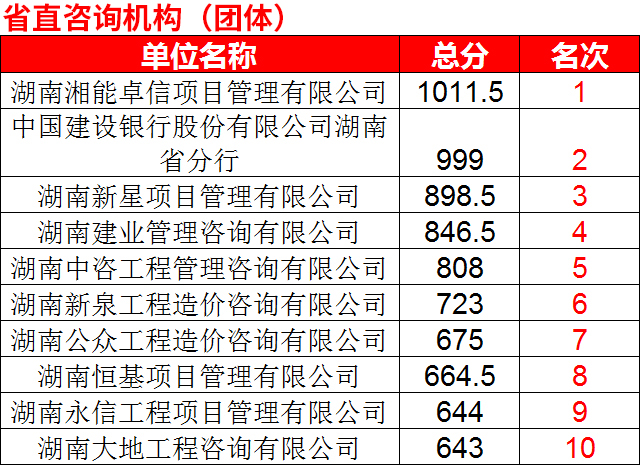 根據(jù)省直機關工委、省住房和城鄉(xiāng)建設廳、省總工會《關于舉辦湖南省直首屆“超英杯”工程造價職業(yè)技能競賽的通知》(湘直通[2016]22號)的有關精神,于2016年10月24日上午在長沙舉行了預賽,10月28日將參賽選手成績上網(wǎng)供查詢,截止10月31日16:00時,經(jīng)各參賽隊確認,成績無誤。現(xiàn)將進入決賽的單位和選手名單予以公布,公示時間為2016年11月1日至11月3日。如對公布名單有異議,申請人可在公示期間以書面形式提供陳述材料,逾期不予受理。個人反映情況要簽署真實姓名,并需留下真實的聯(lián)系電話、地址、郵編。聯(lián)系電話0731-84165845,郵箱:1747003415@qq.com。