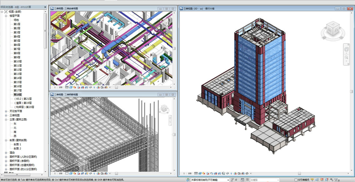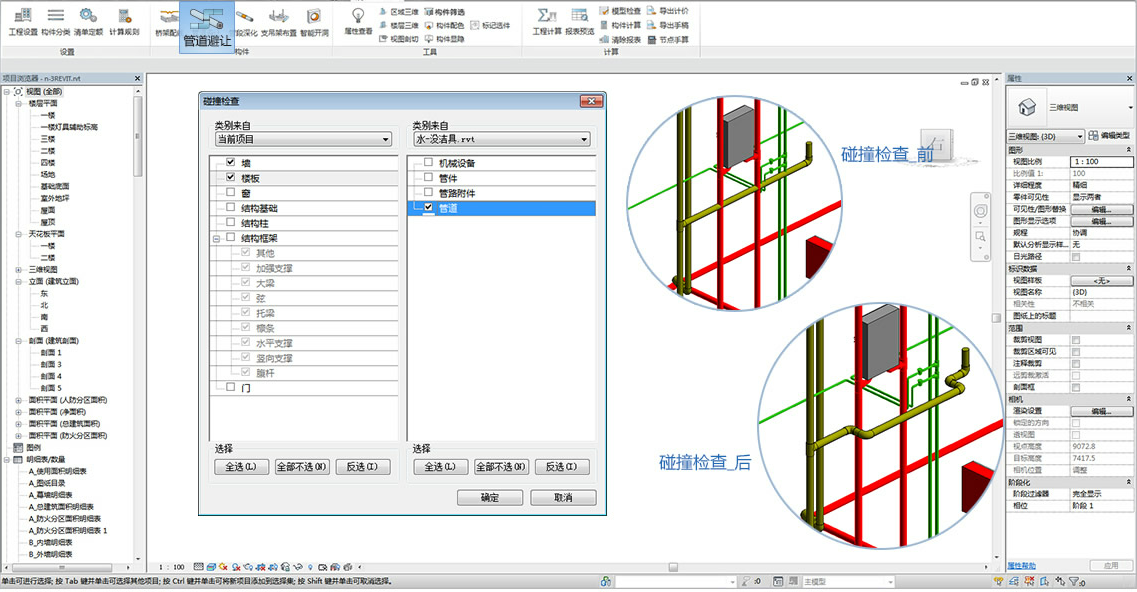 動態(tài)漫游三維模型模擬施工過程,各專業(yè)圖形進行組合,快速檢查碰撞,計算準(zhǔn)確度高