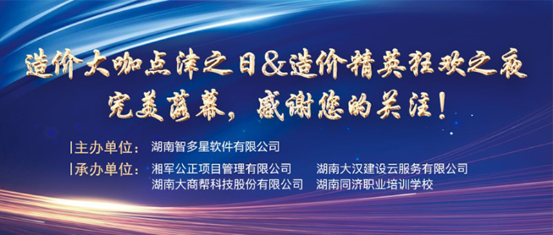 由智多星軟件公司主辦,湘軍公正項目管理公司、大漢建設(shè)云服務(wù)公司、湖南大商幫科技股份公司、同濟職業(yè)培訓(xùn)學(xué)校共同協(xié)辦的“造價大咖點津之日——工程造價熱點痛點破解&行業(yè)發(fā)展高峰論壇”已于2019年12月5日晚完美落幕,感謝您的熱情參與和關(guān)注!